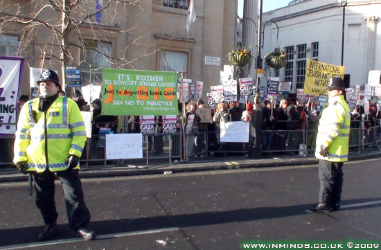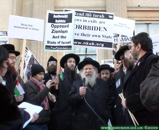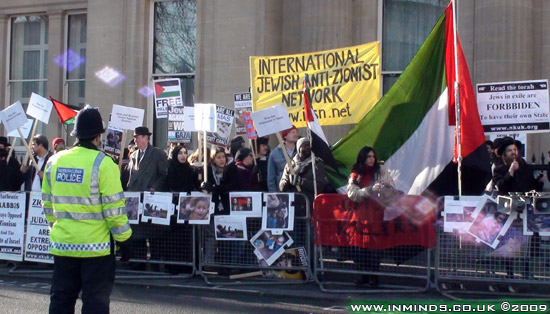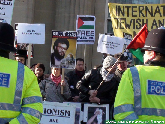 This celebration of genocide couldn't go unchallenged, the Islamic Human Rights Commission (www.ihrc.org) organised a counter-demo to oppose it. The diversity of the turnout was a true indication of the opposition to zionism. There were Muslims, Christians, socialists, and other pro-justice groups. The largest group opposing the zionist rally, however, were Jews. These included the rabbis from the Neturei Karta (www.nkuk.org), the International Jewish Anti-Zionist Network (www.ijsn.net), Independent Jewish Voices, Jews for Boycotting Israeli Goods, and Jews for Justice for Palestinians.