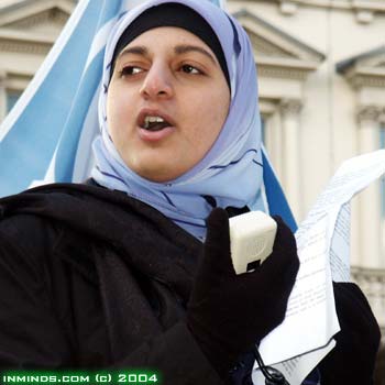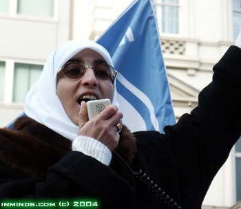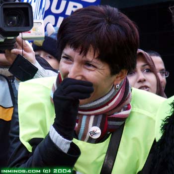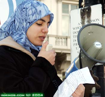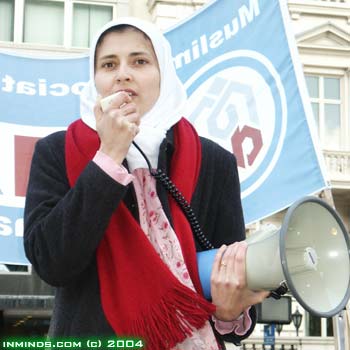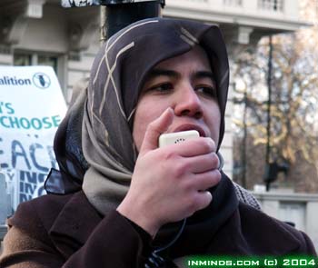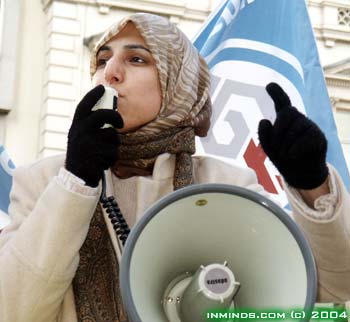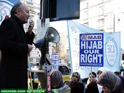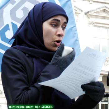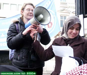 Lynne Hubbard from the Birmingham Trade Union Council delivered a powerful message of solidarity on behalf of the trade unions of Birmingham: "Birmingham trade union council say we have a responsibility to stand shoulder to shoulder with our Muslim brothers and sisters, and give a clear message to Tony Blair that just in the way we were not divided in the anti-war movement we will not be divided over the question of hijab. It is our responsibility to defend all women's right to wear it". She compared the attack on Muslims with that on Irish people in the 70s and demanded "every trade unionist should support women's right to wear the hijab".