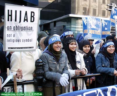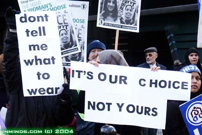 They said they are going in to Afghanistan to protect the rights of Muslim women - why are they taking away the rights of Muslim women right here, now?
