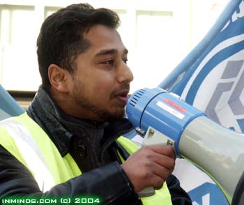 And I have a very simple message today to all my Muslim brothers and sisters and all my non-Muslim comrades and friends. For too long we've had to demonstrate, we've demonstrated for Afghanistan, we've demonstrated for Iraq, and now we say lets hit them where it hurts - and that's the vote. We have the European elections coming up - June 10th - less than five months away. And I say no vote for Labour. No vote for Labour! No vote for Labour!