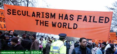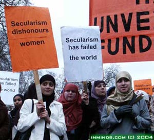 also refered to secularism: "Hijab ban unveils secular fundamentalism" - "Secularism dishonours women" - "Secularism has failed the world" - "Muslims in Britain challenge secularism".